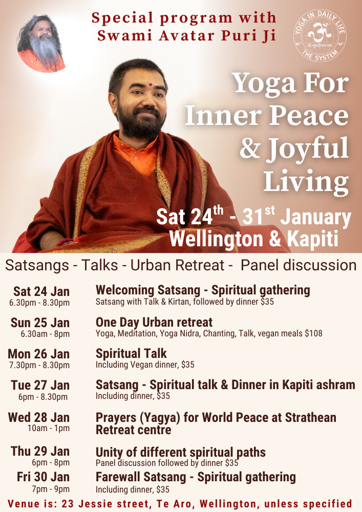 Swami Avatar Puriji's NZ Tour - Yoga for Joyful Living & Inner Peace (Wellington & Kapiti)